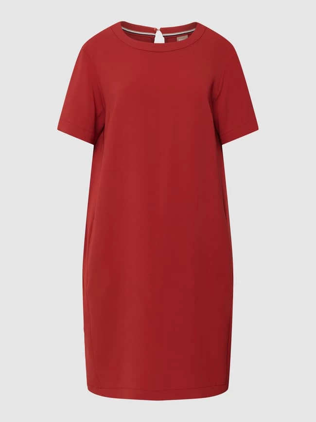 Das Etuikleid von BOSS ist aus einem strapazierfähigen Material-Mix gefertigt und im lockeren Schnitt gehalten. Es zeigt sich in unifarbenem Design mit seitlichen Eingrifftaschen und Rundhalsausschnitt.