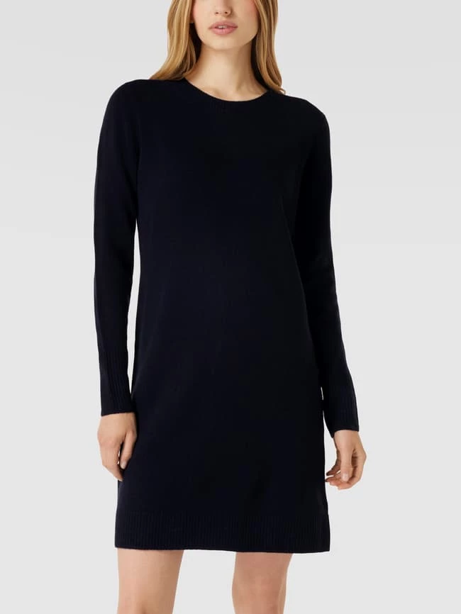 Christian Berg Woman Knielanges Strickkleid Mit Geripptem Rundhalsausschnitt – Dunkelblau