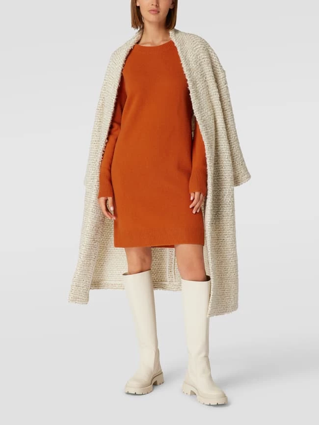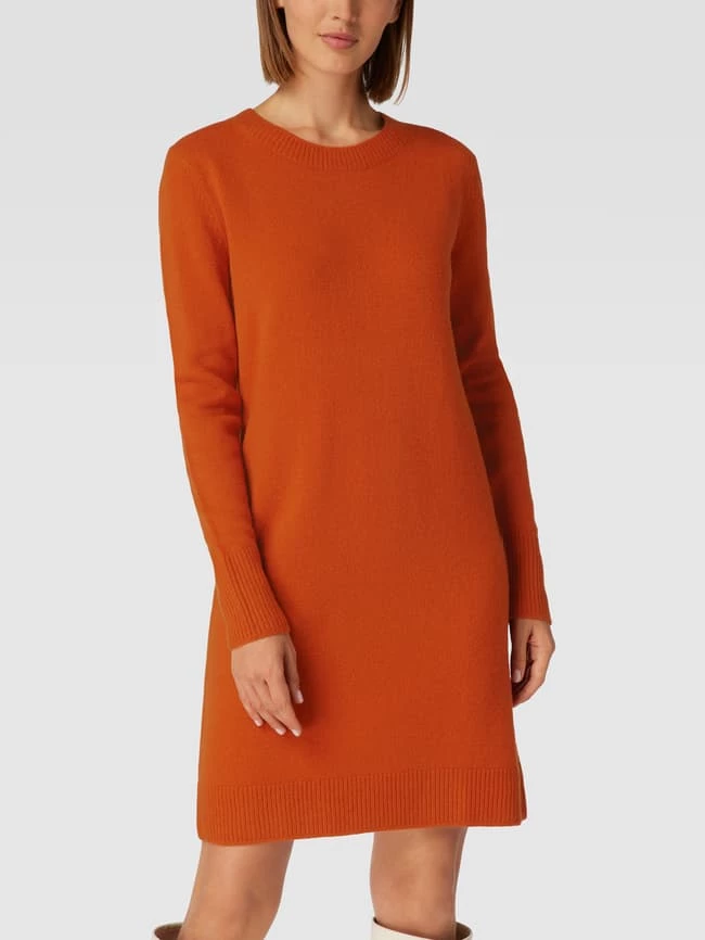Christian Berg Woman Knielanges Strickkleid Mit Geripptem Rundhalsausschnitt – Terrakotta