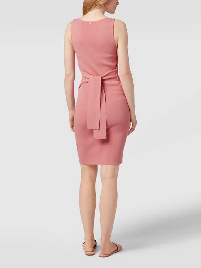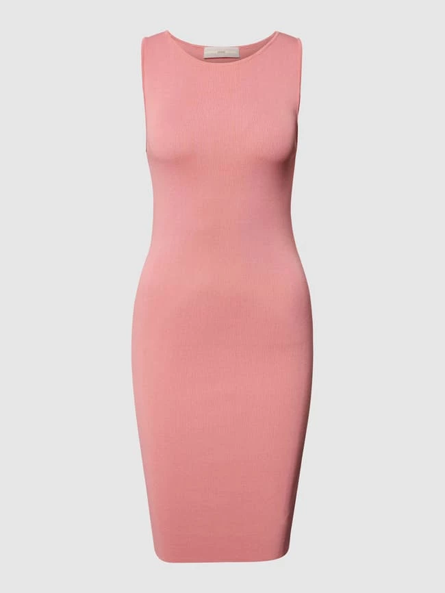 Das knielange Kleid von GUESS ist aus einem Viskose-Mix gefertigt und kommt in körpernaher Passform. Es zeigt sich in Ripp-Optik mit U-Boot-Ausschnitt, Taillenband und breiten Trägern.