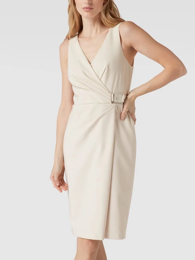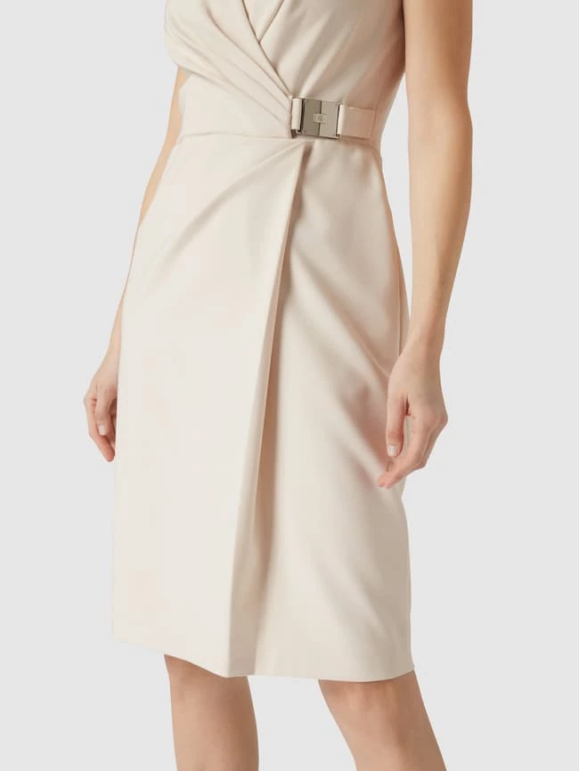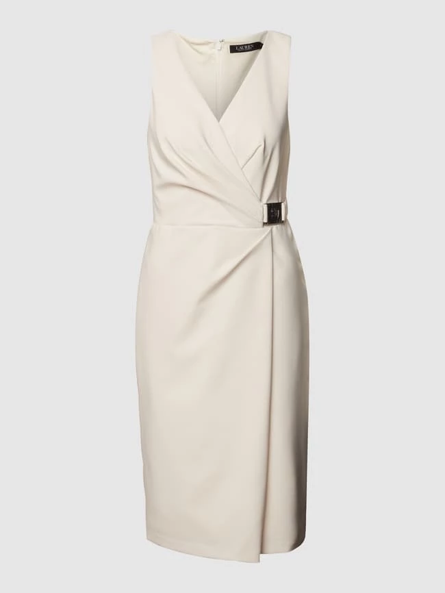 Das knielange Cocktailkleid von Lauren Ralph Lauren ist aus strapazierfähigem Material mit Stretch-Anteil gefertigt und gerade geschnitten. Es kommt mit V-Ausschnitt, Label-Applikation in metallic und ohne Ärmel.
