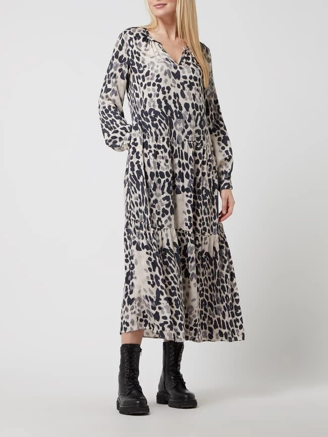 Milano Italy Midikleid Mit Animal-Print – Beige