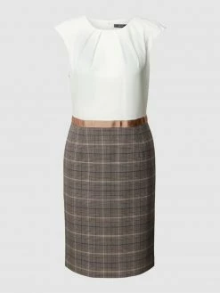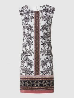 Das Etuikleid von MONTEGO ist aus einem strapazierfähigen Material mit Viskose-Anteil gefertigt und im körpernahen Schnitt gehalten. Es zeigt sich mit Allover-Muster, Rundhalsausschnitt sowie Nahtreißverschluss.