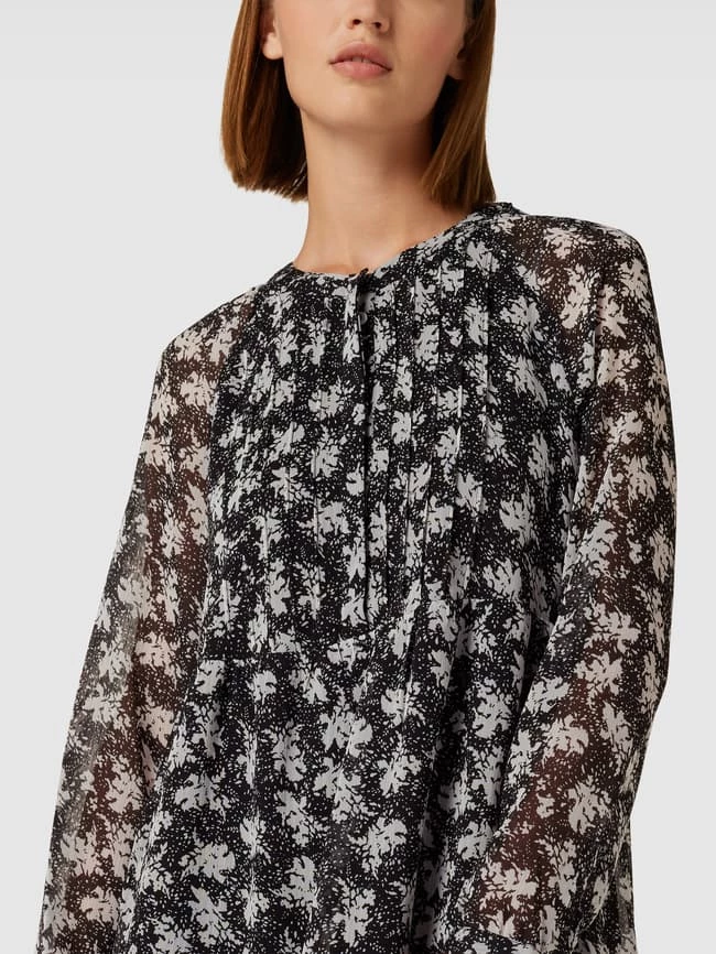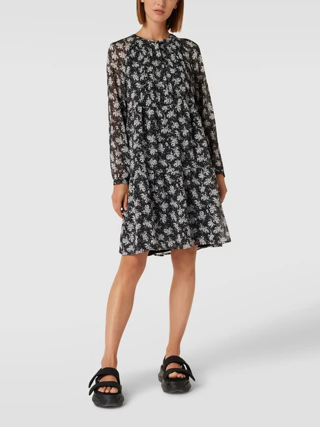 Das knielange Kleid von MONTEGO ist aus einem strapazierfähigen Material gefertigt und gerade geschnitten. Sie zeigt sich mit Allover-Muster und kurzer Knopfleiste.