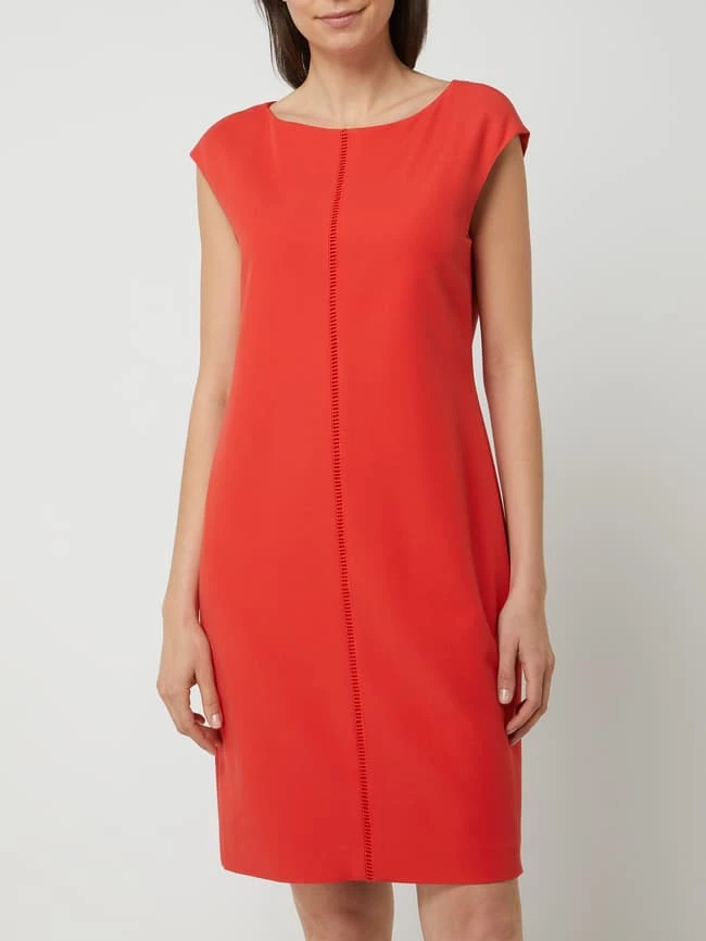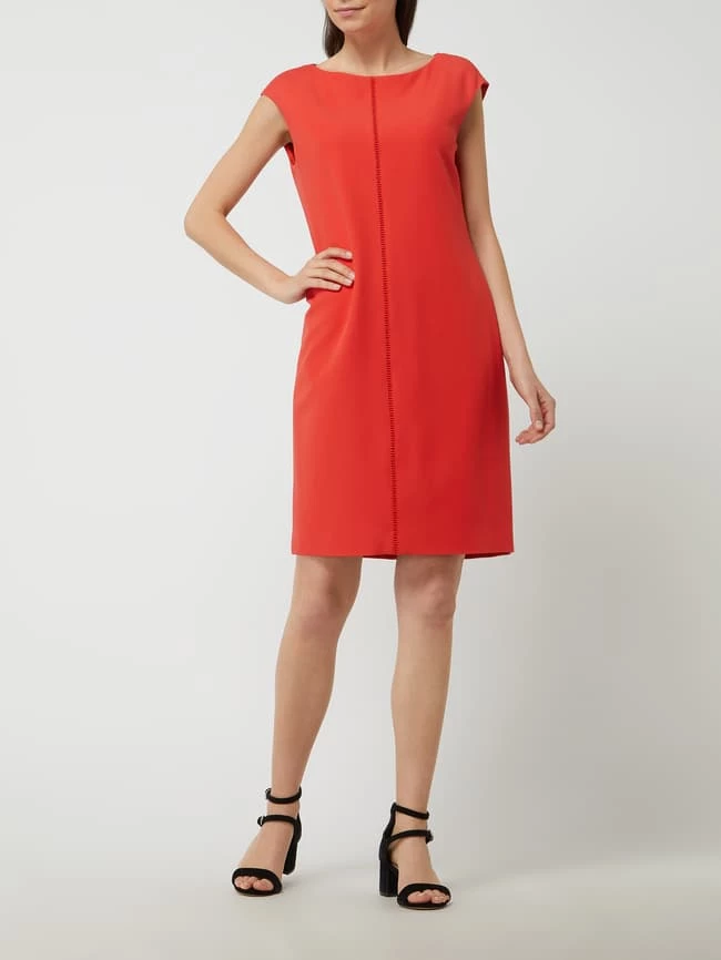 Das Kleid von s.Oliver BLACK LABEL ist aus einem Viskose-Elasthan-Mix gefertigt und eng anliegend geschnitten. Es zeigt sich mit Rundhalsausschnitt, Zierborte und Nahtreißverschluss.