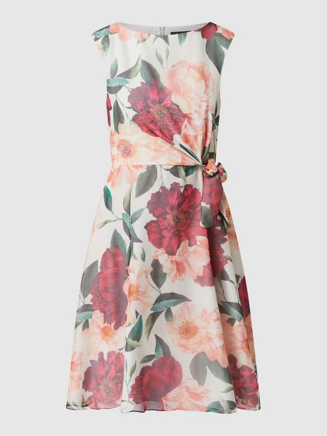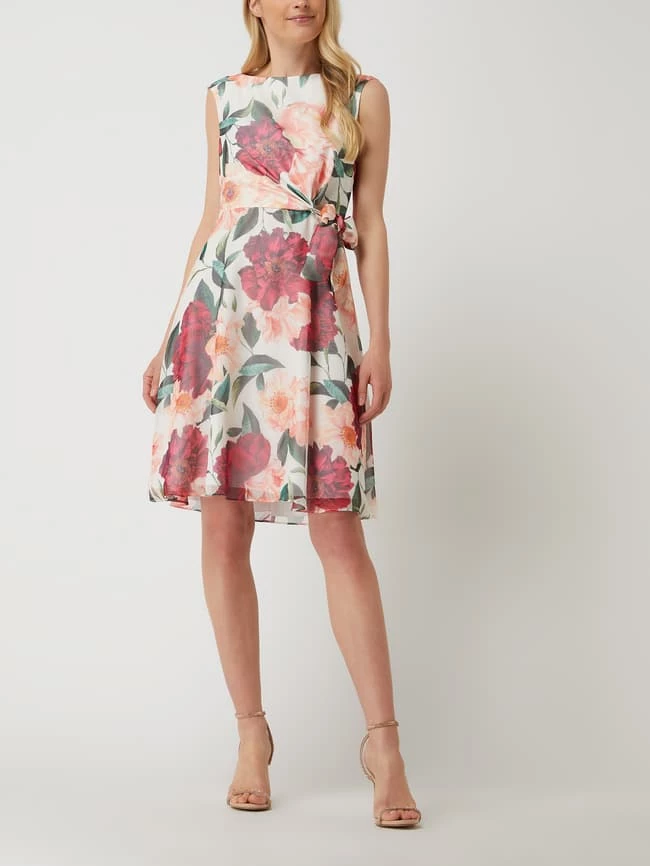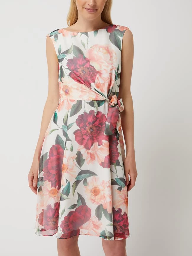 Das Cocktailkleid von Vera Mont ist aus Chiffon gefertigt und tailliert geschnitten. Es kommt mit floralem Muster, Rundhalsausschnitt und seitlichem Schleifendetail.